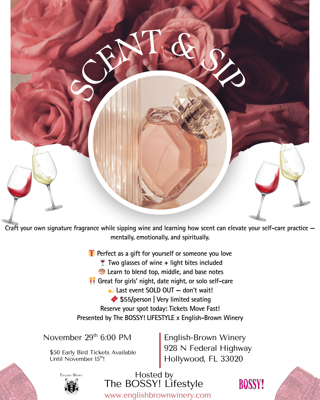 SCENT & SIP IS BACK! πΈπ· Join us Saturday, November 29th | 6β8 PM for the return of our SOLD OUT wine & wellness experience! β¨ Create your own custom perfume π· Sip curated wine from @englishbrownwinery π Make a holiday gift with soul and scent π Perfect for a night out or a meaningful solo rese...Read more